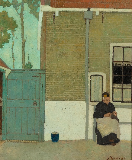 Het schilderij in St. Louis was kennelijk een grotere versie van dit schilderij (50,4 x 35,8 cm.) van B.J. Blommers ( 1845-1914). Veiling Collectie Kamerbeek, Christie’s, juni 2017.