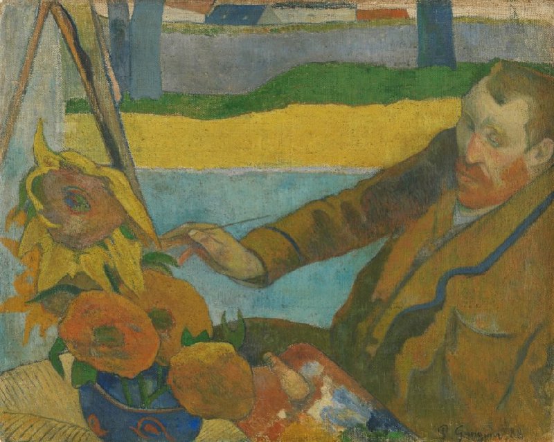 Voor de komst van G in Arles had Vincent geen recent werk van hem gezien, behalve het geruilde schilderij Les Négresses uit 1887 en bovengenoemde zelfportret Les Misérables. Door middel van de brieven van Theo zal hij zich wel een beeld gevormd hebben van zijn werk, want Theo kreeg geregeld werk van G toegestuurd om te verkopen. Vanaf augustus verkreeg V ook inlichtingen over G's werk door middel van de beschrijvingen van Emile Bernard met wie Gauguin in Pont Aven samenwerkte. Die sneed theoretische problemen in zijn brieven aan, die wel ongeveer gelijkluidend zullen zijn geweest aan wat hij later in zijn Souvenirs à Paul Cézanne (1912) schrijft, [hier in Engelse vertaling] ‘…. a desire to found an art that would be of the most extreme simplicity and that would be accessible to all, so as not to practice it individually, but collectively ... This would be the art of our times because of its very simplicity since everything of the seen object has been said already we shall represent it as a whole, the missing parts being filled in by force of habit the accomplishment in painting of that sentence by St. Denis the Aeropagite, the Platonist: The idea is the form of things outside of those things ... since the idea is the form of things taken by imagination, it was necessary to paint not any longer in the presence of the object, but in conjuring the object from the imagination, which had preserved its idea.’